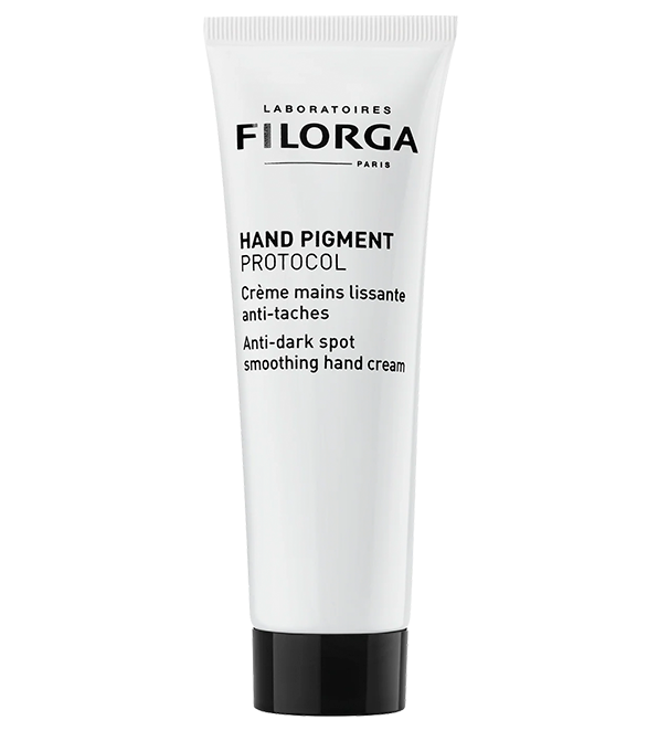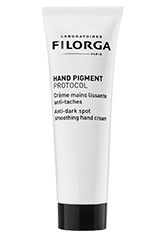 HAND PIGMENT PROTOCOL es una crema de manos antimanchas inspirada en los procedimientos de láser de resurfacing, diseñada para reducir visiblemente la pigmentación, unificar el tono de la piel e hidratar profundamente las manos. Su complejo Photo-control combina la vitamina C, conocida por su acción iluminadora sobre las manchas oscuras y la hiperpigmentación. Los flavonoides con efecto de rejuvenecimiento mejoran la textura de la piel, haciendo que las manos sean más suaves y juveniles. El ácido hialurónico encapsulado proporciona una hidratación profunda y duradera, aportando confort y suavidad. El complejo NCEF único, desarrollado por FILORGA, estimula la revitalización celular. Día tras día, las manos se sienten más suaves, más uniformes y menos ásperas.